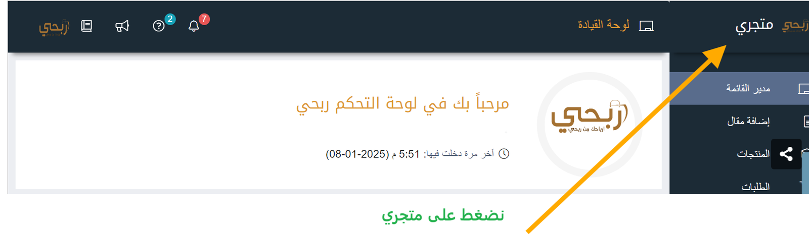 أين تجد متجرك في لوحة التحكم؟